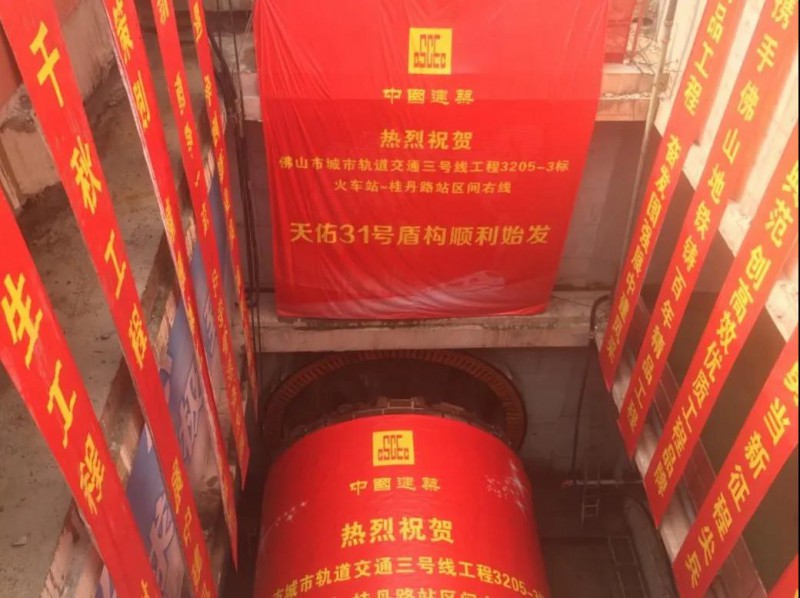 火车站站—桂丹路站区间为佛山地铁三号线连接南海狮山片区与禅城火车站交通枢纽的重要通道。该区间由中建三局承建,“天佑31号”是3205-3标始发的首台盾构机。