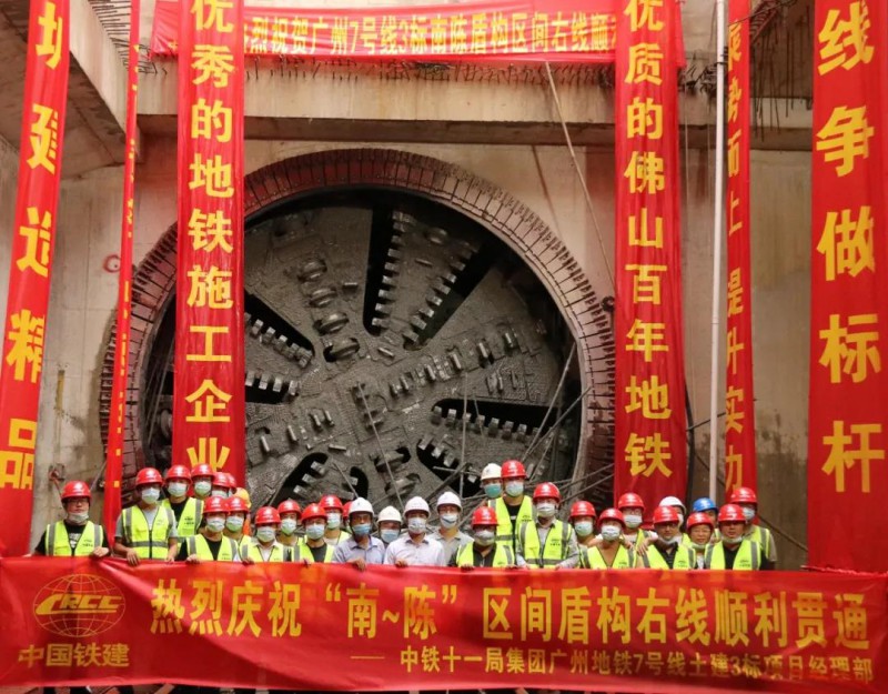 5月10日16点08分,随着一阵“轰隆隆”的响声“铁龙1号”盾构机在广州市轨道交通7号线一期工程西延顺德段(以下简称7号线顺德段)陈村新城站盾构接收端破墙而出,标志着南涌站~陈村新城站区间右线盾构顺利贯通。