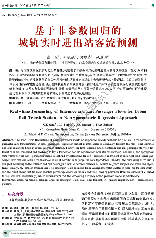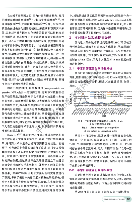 基于非参数回归的城轨实时进出站客流预测