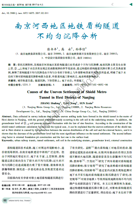 南京河西地区地铁盾构隧道不均匀沉降分析