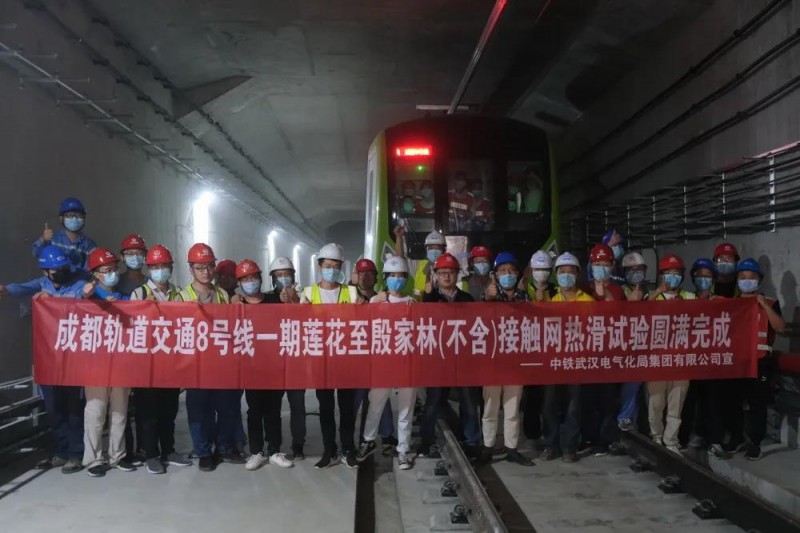 5月16日下午18时,随着停靠在8号线元华停车场的8029号电客车受电弓平稳降落,成都地铁8号线一期莲花至殷家林(不含)区段为期1天的“热滑”试验圆满完成!