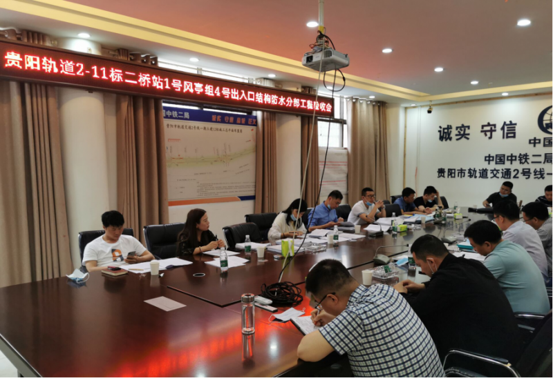 5月22日,贵阳轨道交通2号线一期土建11标二桥站1号风亭组及4号出入口、市西河三桥南路及黔春路河段改造工程及二桥站人行天桥的基坑围护、地下结构防水工程、主体结构等7个分部工程进行验收。