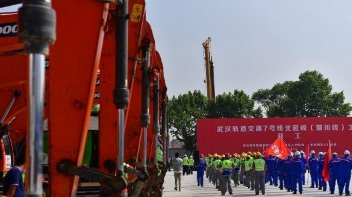 5月31日上午,武汉轨道交通7号线北延线工程在横店站正式开工。全面开启武汉轨道交通7号线北延线建设大幕,是武汉地铁发起搏杀攻势、落实中央、省、市统筹推进疫情防控和经济社会发展有关要求,加快推进新基建项目的重大举措,也是“市区共建”模式的又一次重大实践。