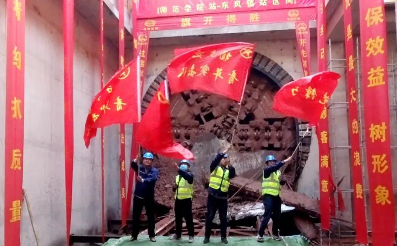 师范学院~东风镇站盾构试验段右线顺利贯通,为土压平衡盾构机在西南地区复杂地质条件下的技术创新累积了经验,为在喀斯特地质条件下开展大规模盾构施工的同时保证安全、平稳、高效掘进,克服岩溶地质、断面岩层管片上浮、地下水喷涌、泥饼、盾体滚转换刀工作及刀盘刀具螺旋机磨损处理等问题方面提供了极大参考价值和施工参数,同时也为轨道3号线后续投入盾构施工的标段区间积累了宝贵的经验。