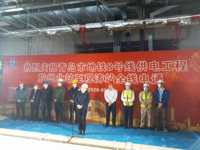 5月30日11时18分,地铁8号线观涛站接触轨隔离开关合闸,8号线工程供电01工区最后一个接触轨供电分区送电成功,区间接触轨稳定受流,胶州北站至观涛站顺利实现电通。