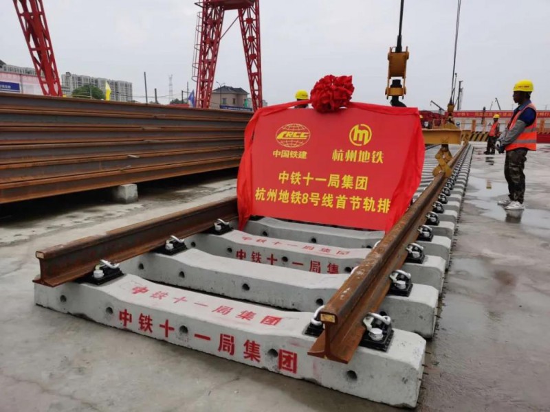 6月5日上午,随着一节25米长的轨排被稳稳地吊装在杭州地铁8号线新湾铺轨基地隧洞基底上,地铁8号线正式开始铺轨,为实现建成通车又迈出了坚实的一步。