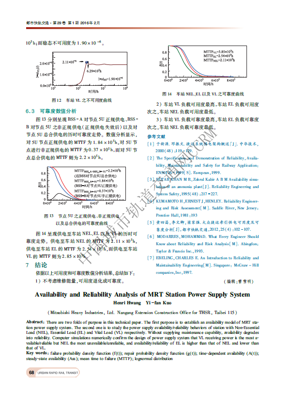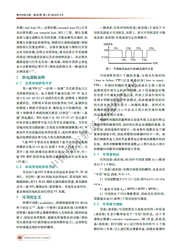 大众捷运车站供电可用度及可靠度分析