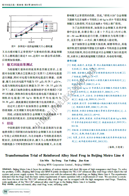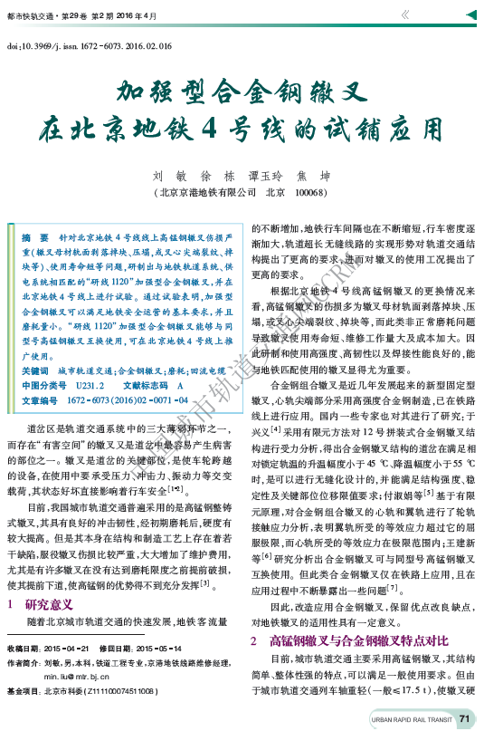 加强型合金钢辙叉在北京地铁4号线的试铺应用