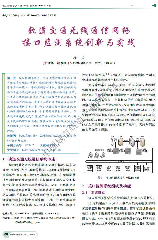 轨道交通无线通信网络接口监测系统创新与实践
