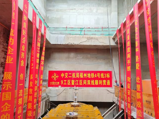10月14日,在福州市福州地铁4号线鳌峰路站接收井处,随着左线盾构机驶出洞口进入钢套筒,由公司承建的福州地铁4号线鳌江区间顺利实现双线贯通,该区间采用中交首例地铁施工工艺——泥水盾构钢套筒分体始发盾构机掘进。