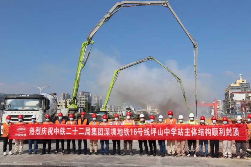 10月20日上午,随着最后一块顶板混凝土浇筑完成,地铁16号线坪山中学站主体结构顺利封顶。这也是全线第10座封顶的车站。