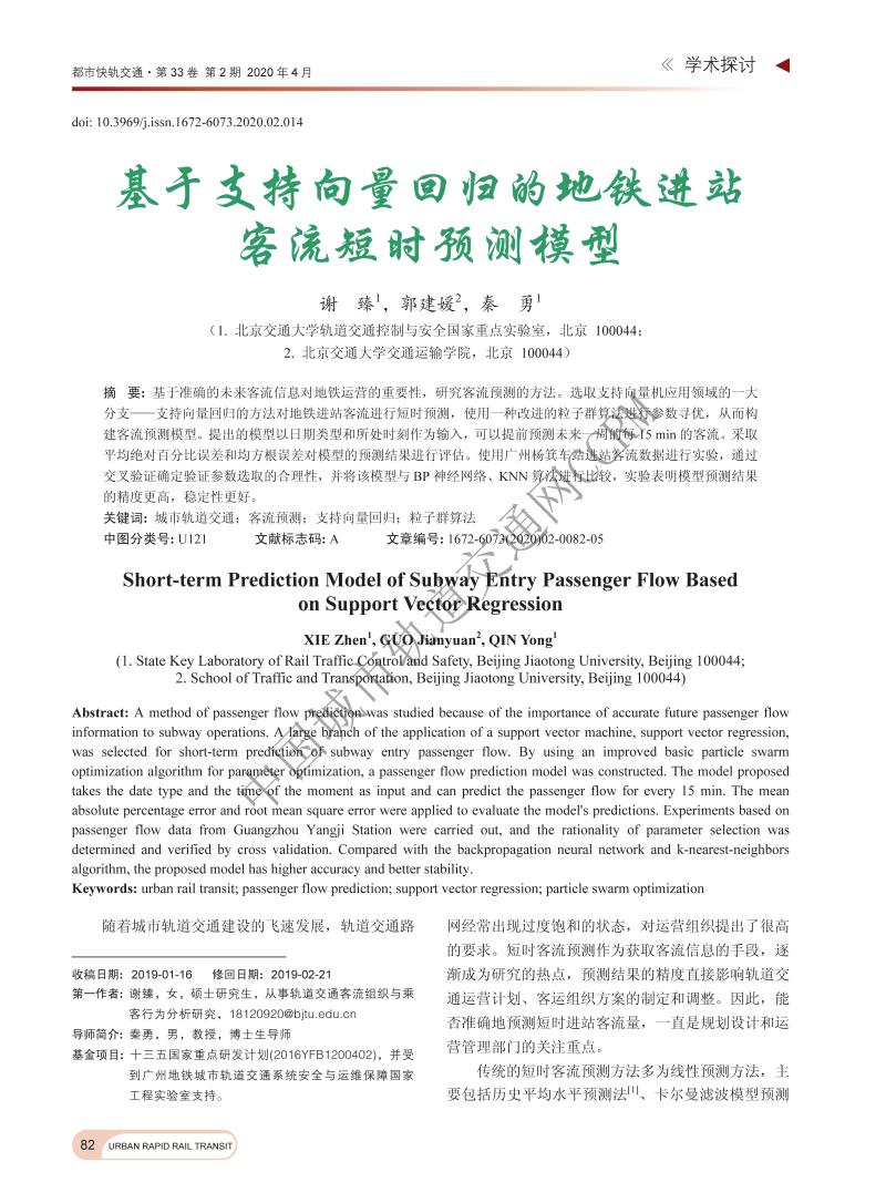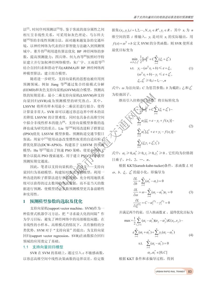 基于支持向量回归的地铁进站客流短时预测模型
