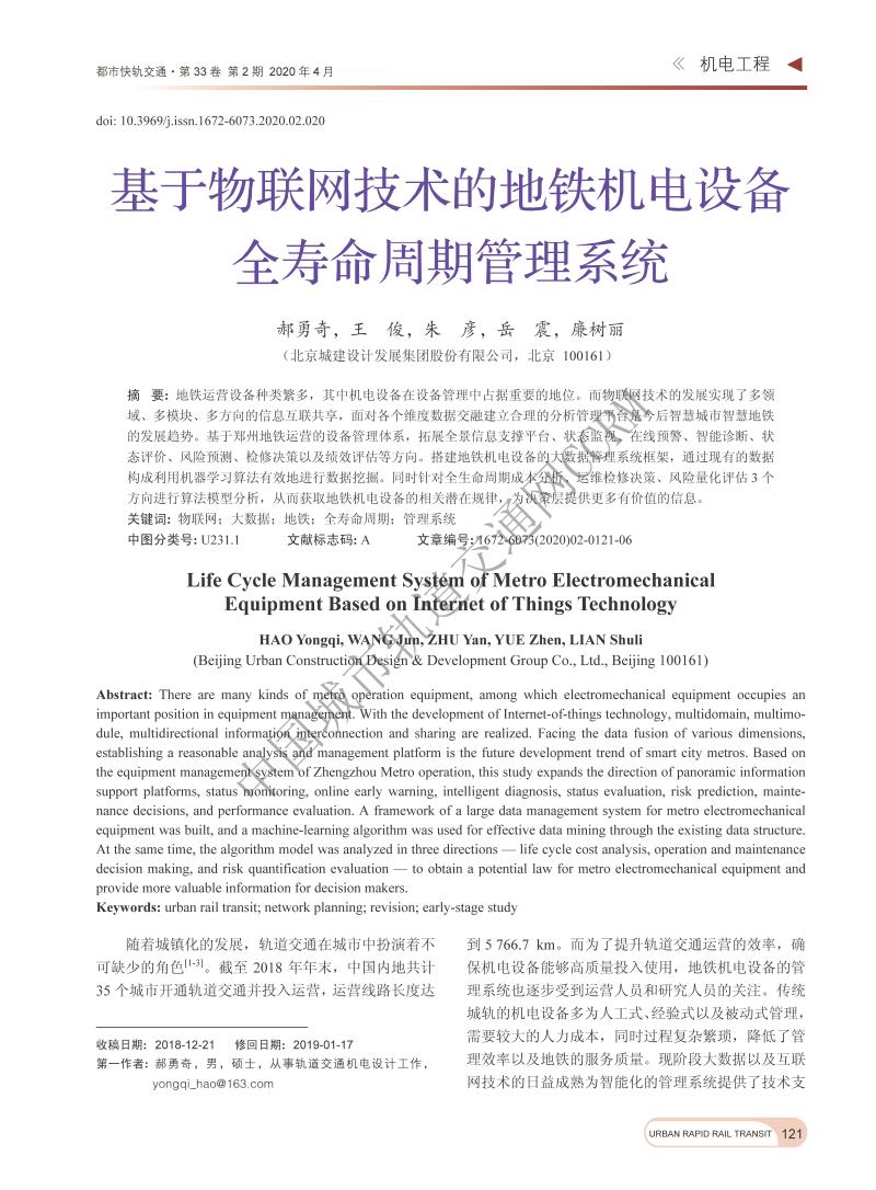 基于物联网技术的地铁机电设备全寿命周期管理系统