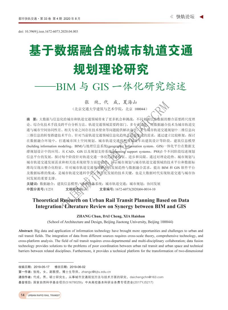 基于数据融合的城市轨道交通规划理论研究—BIM与CIS一体化研究综述