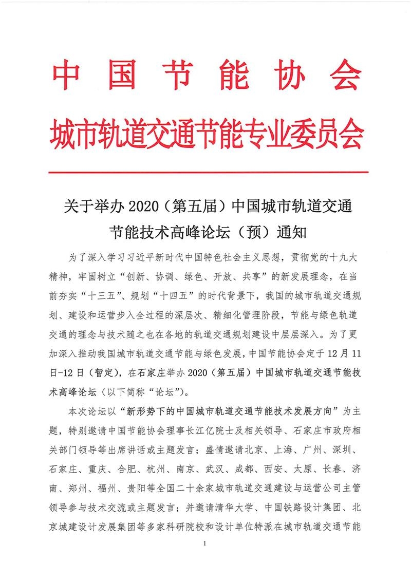 (一)2020(第五届)中国城市轨道交通节能技术高峰论坛