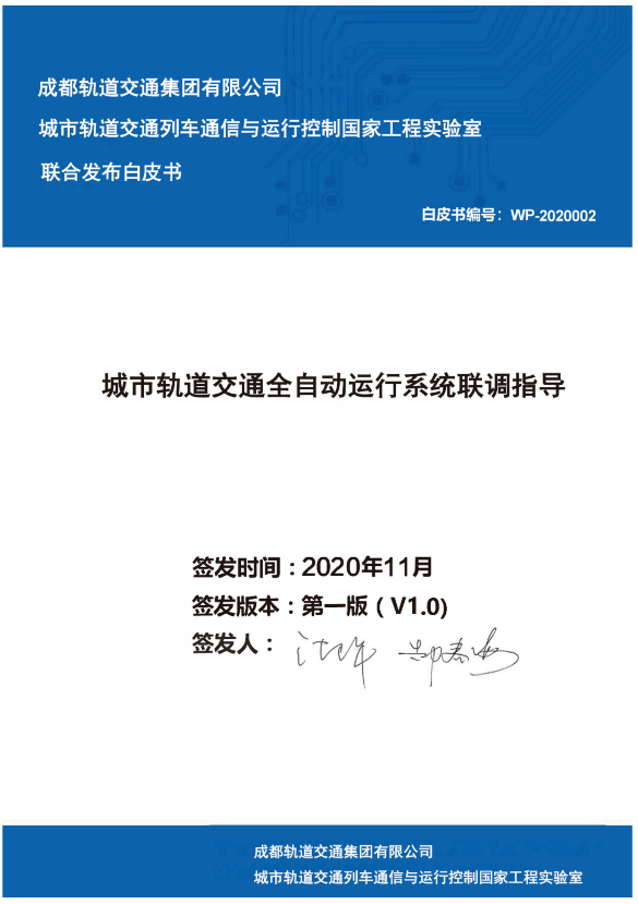近日,成都轨道集团、城轨通信与列控国家工程实验室联合发布了《城市轨道交通全自动运行系统联调指导》白皮书。