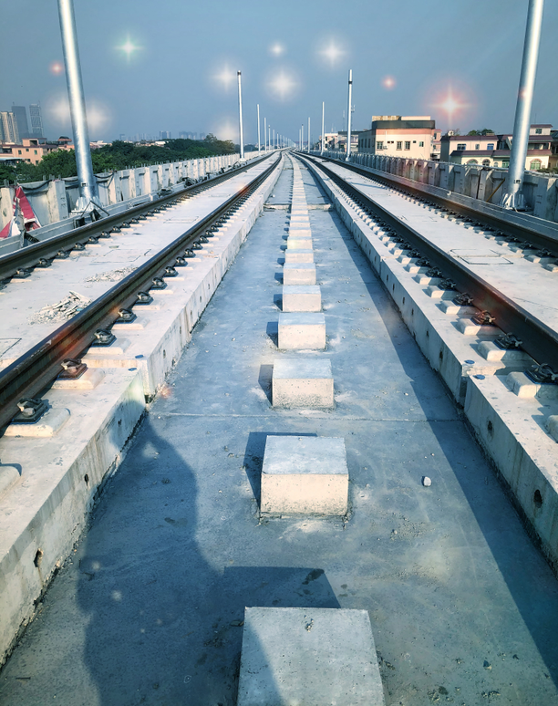 佛山地铁2号线一期工程高架段包含花仙U型槽至林岳西站三站四区间,全长共计12.255公里,占正线总长度18.9%,高架段道床类型复杂多样,工艺技术要求高。项目先后克服了土建施工滞后、抵御极端台风天气、封路作业、各专业交叉施工等不利因素,以“分段围歼、各个击破、分进合击”为施工思路,不断优化工序衔接,强化与业主、EPC、设计、监理及各相关标段方的沟通联系,为项目创造良好的施工环境。