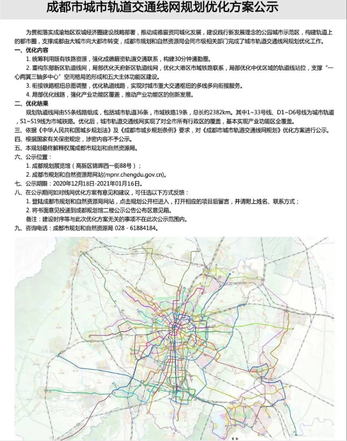 近日,成都市城市轨道交通线网规划优化方案公示!