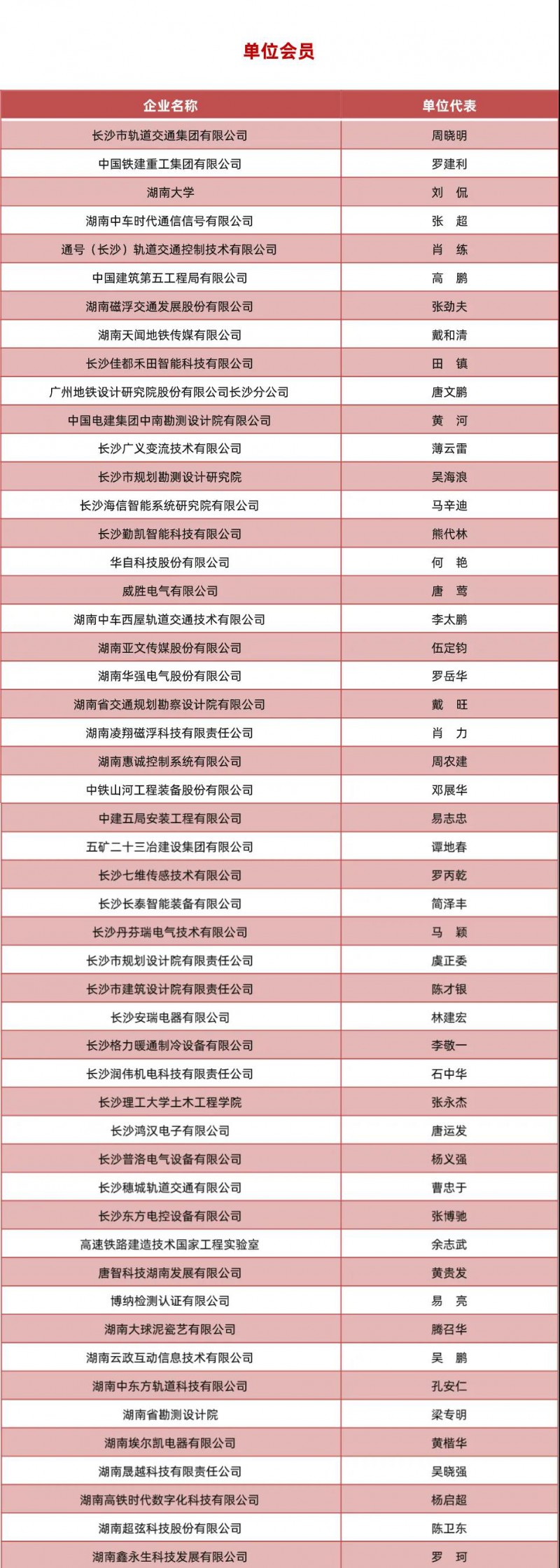 中国工程院院士丁荣军,中国工程院院士陈湘生,长沙市人大常委会副主任、先进轨道交通装备产业链链长袁黎明,北京交通大学土木建筑工程学院院长、教授高亮,国防科技大学智能科学学院磁浮交通重点项目总师、研究员龙志强,同济大学国家磁浮交通工程技术研究中心研究员林国斌,全国工程勘察设计大师、广州地铁设计研究院总工程师史海欧,市发改委、市工信局、市民政局、市住建局、市交通局、市科协、长沙经开区、市轨道交通集团等有关领导、51家单位会员代表和37名个人会员出席成立大会。
