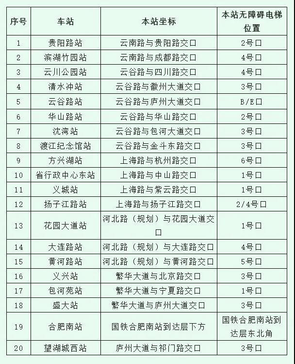 车站地理位置及无障碍电梯位置分布