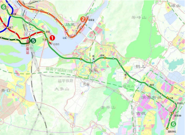 即福州地铁1号线二期开通之后, 2021年,福州还将全面推进地铁6号线、5号线、4号线、滨海快线建设,开通地铁6号线长乐段。
