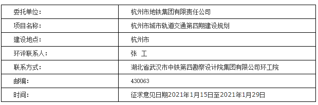 根据《中华人民共和国环境影响评价法》的规定,为了使杭州市城市轨道交通第四期建设规划能更好地为公众服务,尽量减缓城市轨道交通可能带来的负面环境影响,我们真诚地希望您提出与本期建设规划相关的环境保护方面意见,我们将在《环境影响报告书》中真实记录您的意见和建议,将您的宝贵意见、建议向有关部门反映。