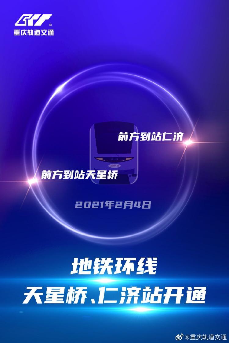 2021年2月4日,重庆地铁环线天星桥站和仁济站开通初期运营。天星桥站、仁济站运营时间与环线保持一致。