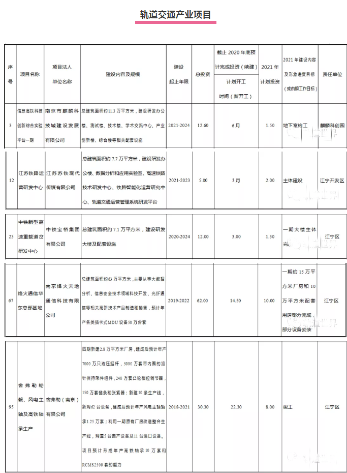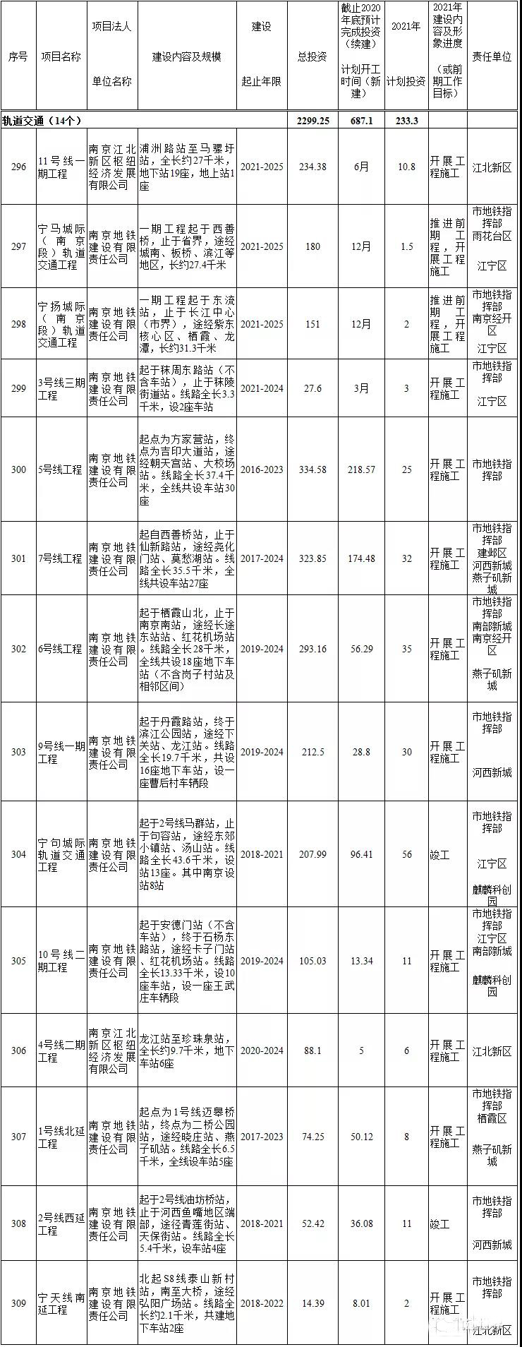 轨道交通交通类当年实施项目包括,轨道交通14个,为11号线一期工程、宁马城际(南京段)轨道交通工程、宁扬城际(南京段)轨道交通工程、3号线三期工程、5号线工程、7号线工程、6号线工程、9号线一期工程、宁句城际轨道交通工程、10号线二期工程、4号线二期工程、1号线北延工程、2号线西延工程、宁天线南延工程。