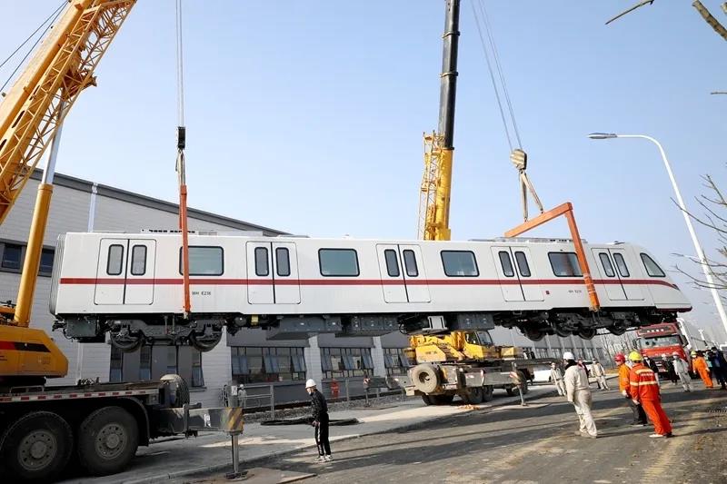 武汉地铁集团建设事业总部车辆部主管工程师刘健介绍,由于列车是分拆成单节车厢进行运输,因此现场是没有动力的,必须靠牵引车,通过轨道将其停入车棚内,才算整个接车过程的全部完成。