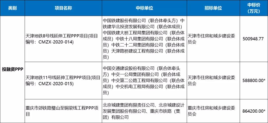 2月城市轨道交通投融资PPP类市场共计3条中标信息,总额超过1953948.77万元。