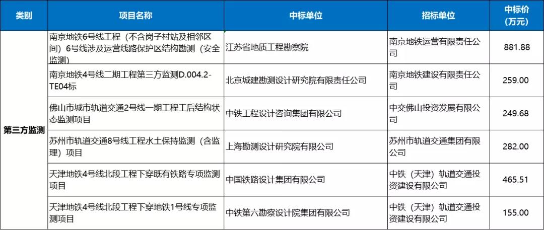 2月城市轨道交通第三方监测市场有6条中标信息,总额超2293.07万元。