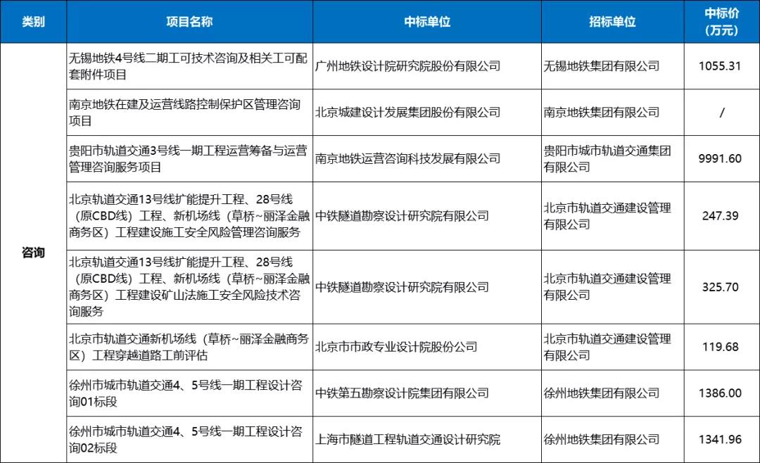 2月城市轨道交通服咨询服务有8条中标信息,总额超过14467.63万元。