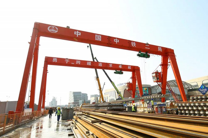 5号线一期分别在庙堰站、兴庄路站设置了铺轨基地。铺轨基地相当于一个“集成工厂”,将轨料拼装成轨排,运输至各作业现场。