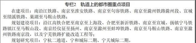 《规划》提出,要强化南京都市圈交通网络和枢纽建设。加强铁路、公路、航道统筹规划建设,形成以南京为中心,以沿江、沪宁-宁合、宁蚌-宁杭、宁淮-宁宣等通道为射线的综合交通网络;依托淮扬镇宣、合蚌淮盐、合芜宣杭等通道,形成都市圈外环。