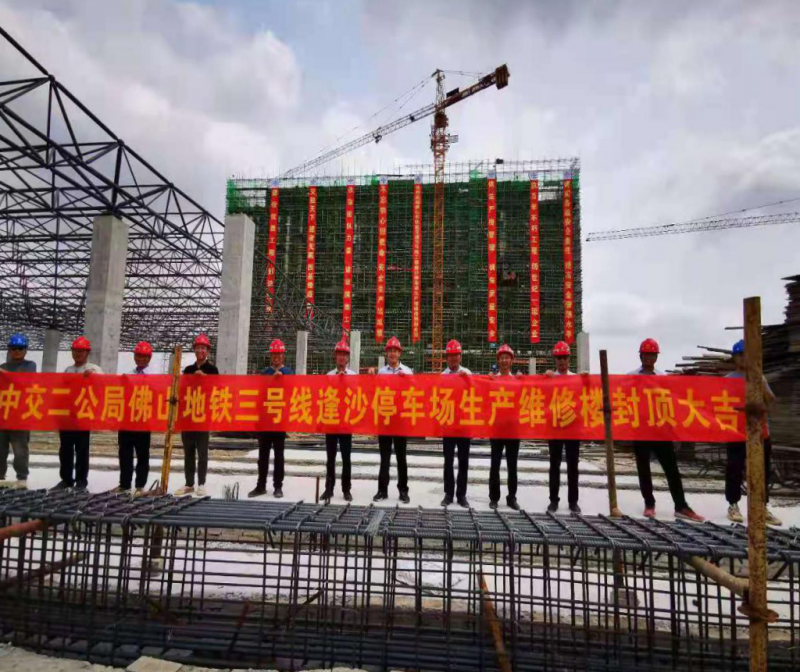 2021年3月31日,三号线工程逢沙停车场生产维修楼主体结构顺利封顶。