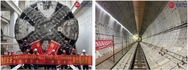 鲁迅故里站——城市广场站区间全长1110.547米,区间地质情况多变,下穿建构筑物多,难度系数大,采用盾构法施工。越秀站——绍兴一中站区间全长约1105米,沿线地质复杂,穿越地层以粉质粘土与淤泥质复合地层为主。在盾构施工期间,2个区间通过智慧管理平台对现场安全、质量、进度、风险等进行24小时实时监控,不断细化盾构掘进参数,加密监测测点、提高监测频率,严格控制盾构姿态,确保了盾构机最终平稳、顺利穿越风险源,实现贯通。