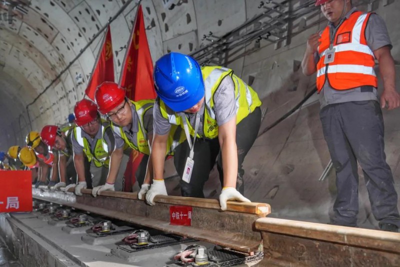 今年春节期间,为确保如期完成施工节点任务,3400多名地铁建设者选择坚守一线,加快推进轨道工程施工作业,创下了日铺轨两公里的新成绩,为首通段短轨贯通奠定了坚实基础。