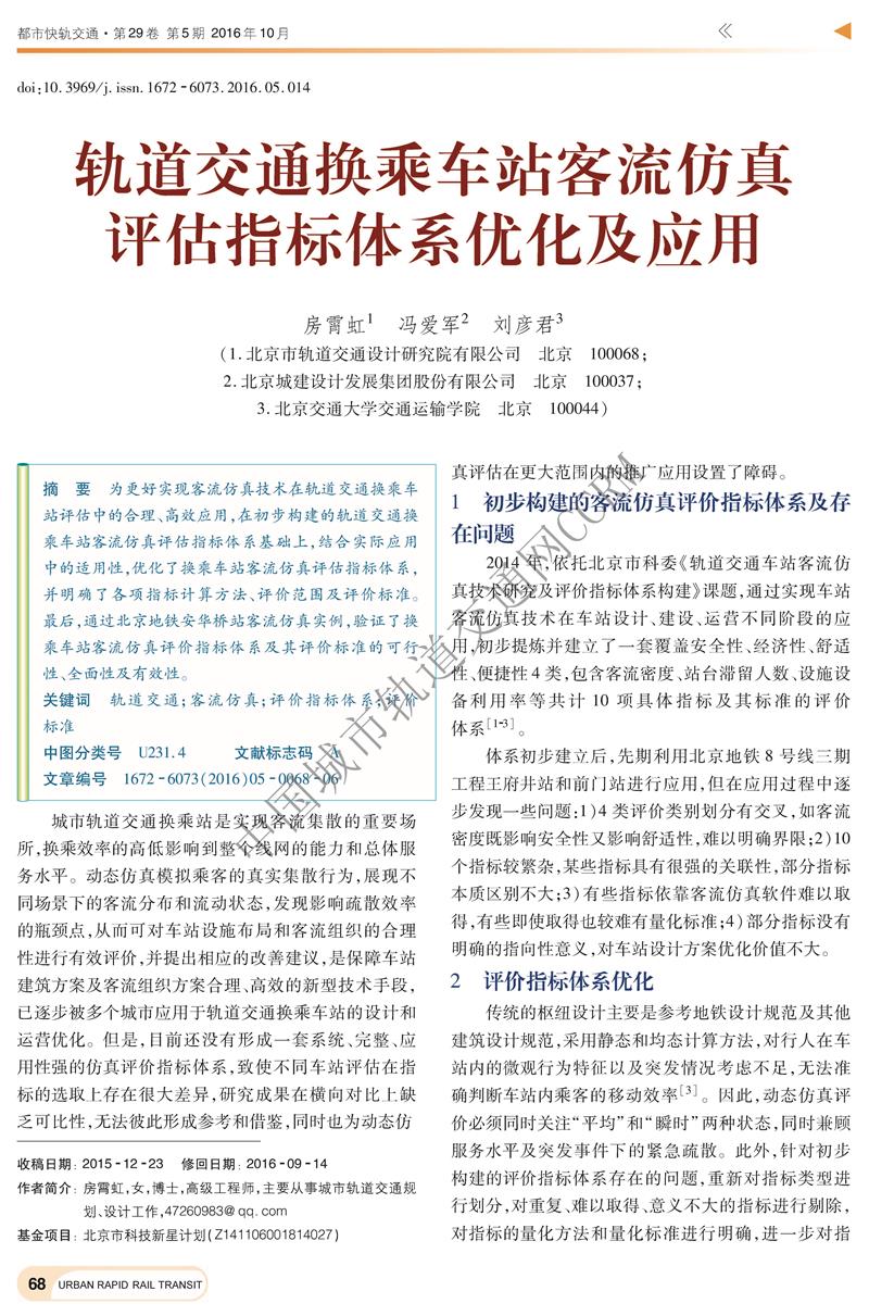 轨道交通换乘车站客流仿真评估指标体系优化及应用