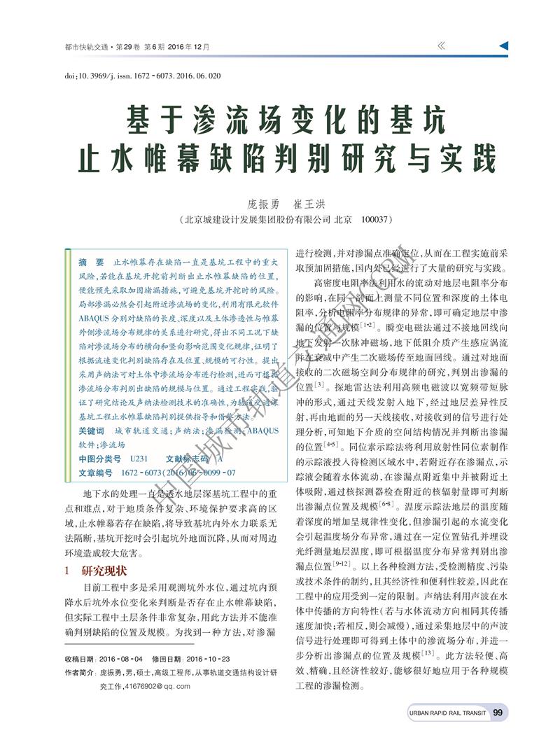 基于渗流场变化的基坑止水帷幕缺陷判别研究与实践