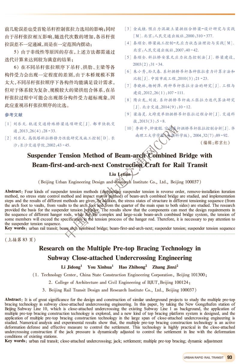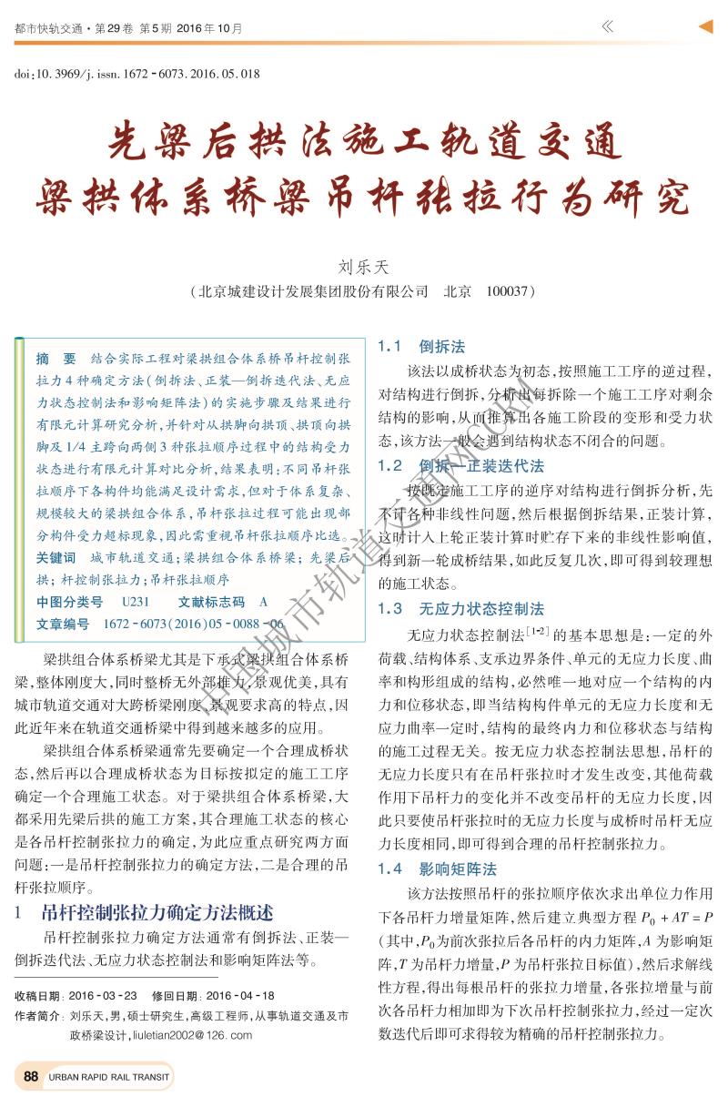 先梁后拱法施工轨道交通梁拱体系桥梁吊杆张拉行为研究