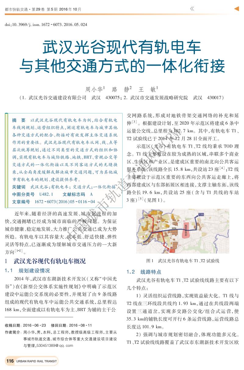 武汉光谷现代有轨电车与其他交通方式的一体化衔接