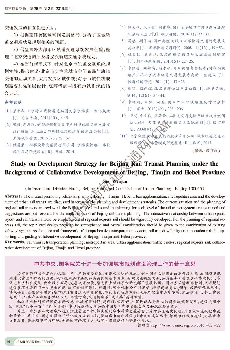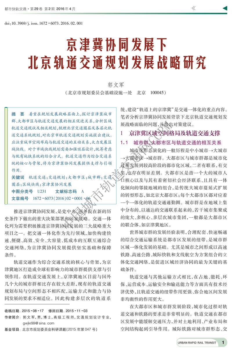 京津冀协同发展下北京轨道交通规划发展战略研究