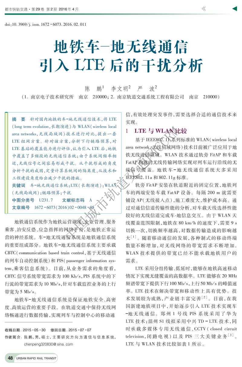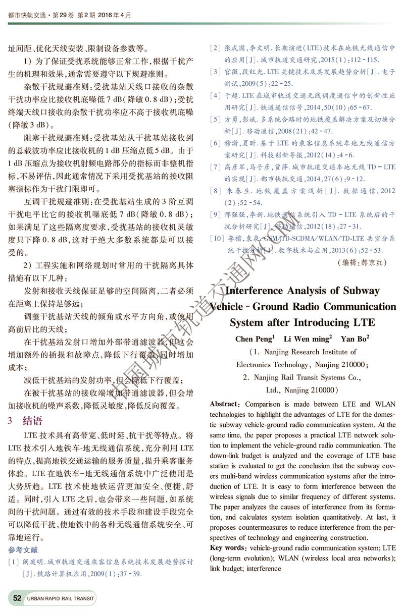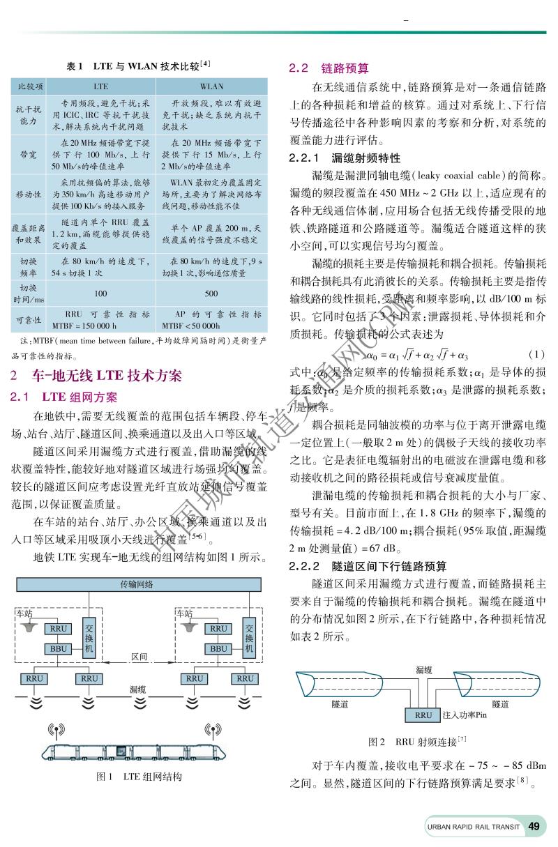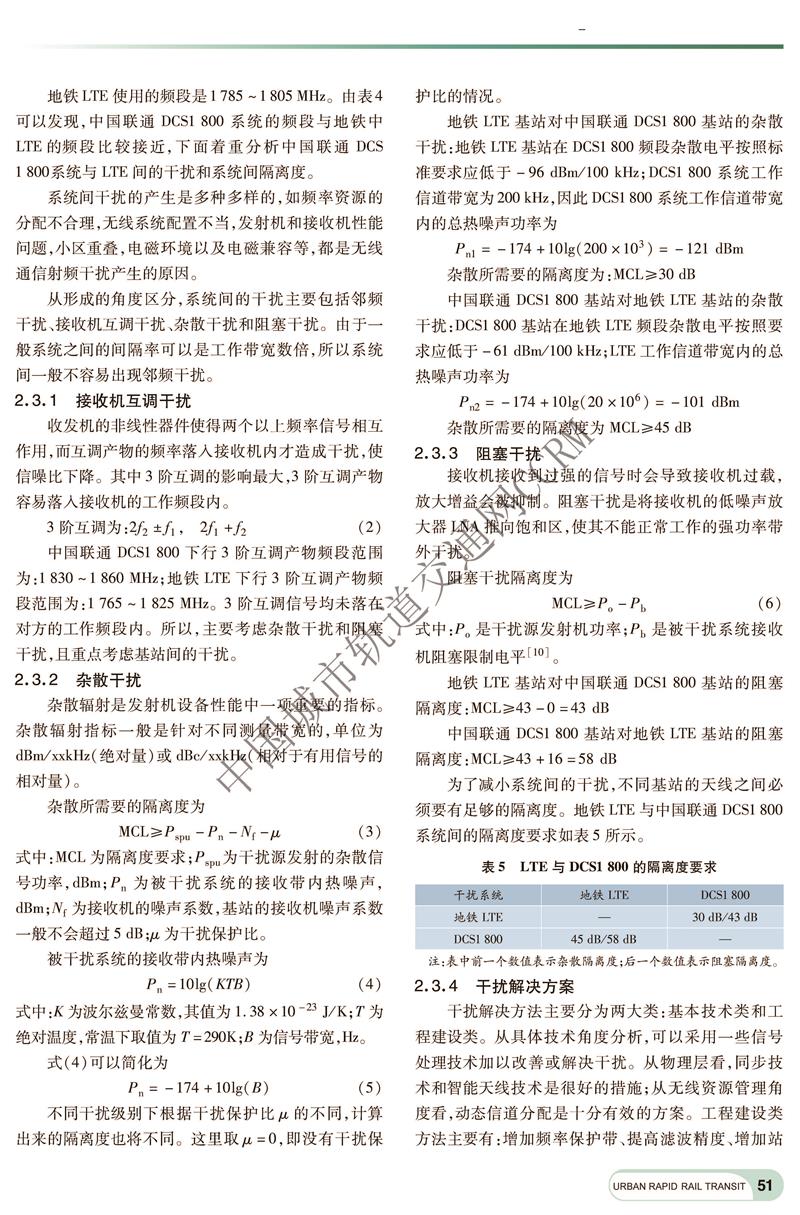 地铁车一地无线通信引入LTE后的干扰分析