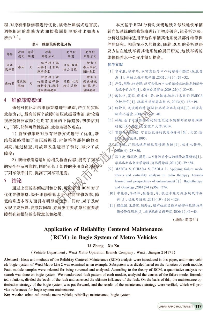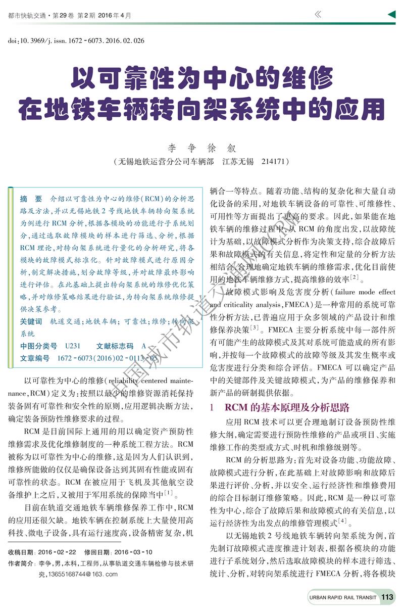 以可靠性为中心的维修在地铁车辆转向架系统中的应用