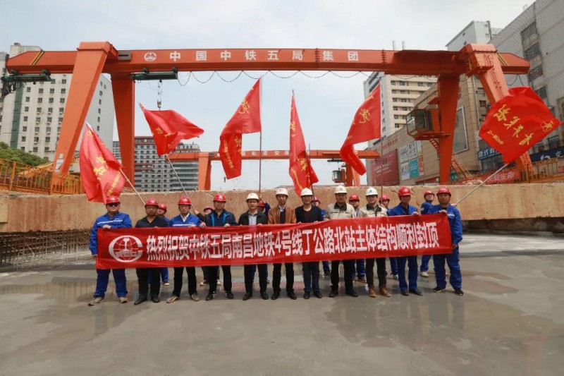 由中铁五局承建的南昌地铁4号线丁公路北站受征迁影响,是4号线最晚开工的一个车站。面对这一情况,项目部全体参建人员从项目开工就始终保持着“努力到无能为力、拼搏到感动自己”的工作信念,克服了市中心老城区房屋征拆量大、北京西路交通疏解困难、地下管线复杂改迁量大、站点周边老旧房屋密集、施工场地狭小以及新冠肺炎疫情影响等重重困难,通过“向黑夜要时间、与雨天抢时间”、超配施工资源、优化施工组织、精细过程管理等措施确保了丁公路北站顺利按期封顶。