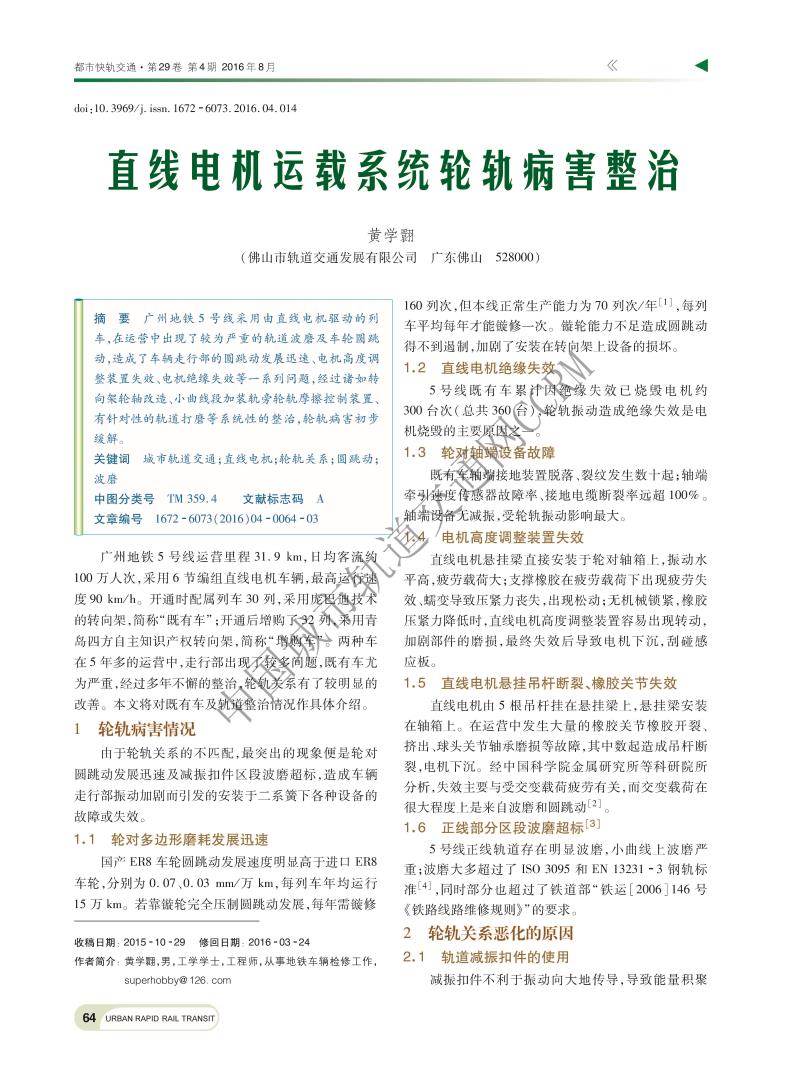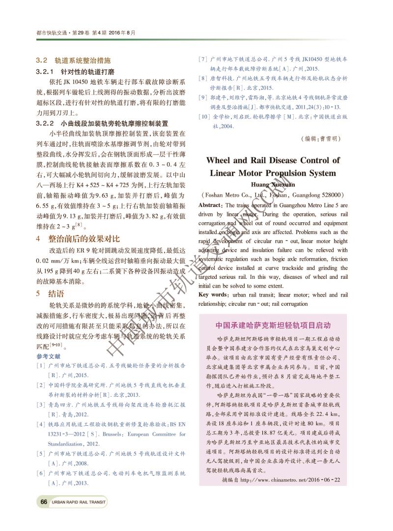 直线电机运载系统轮轨病害整治