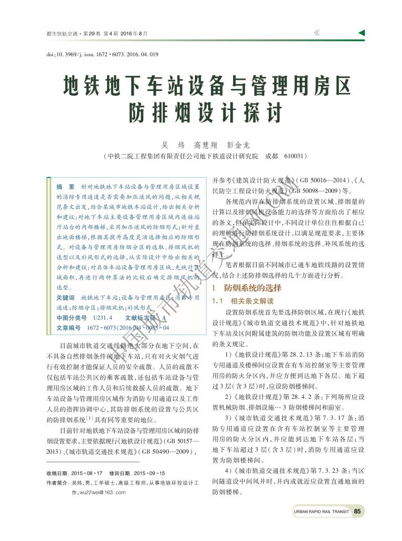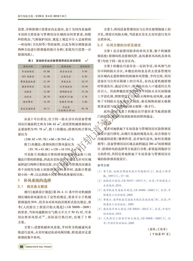 地铁地下车站设备与管理用房区防排烟设计探讨
