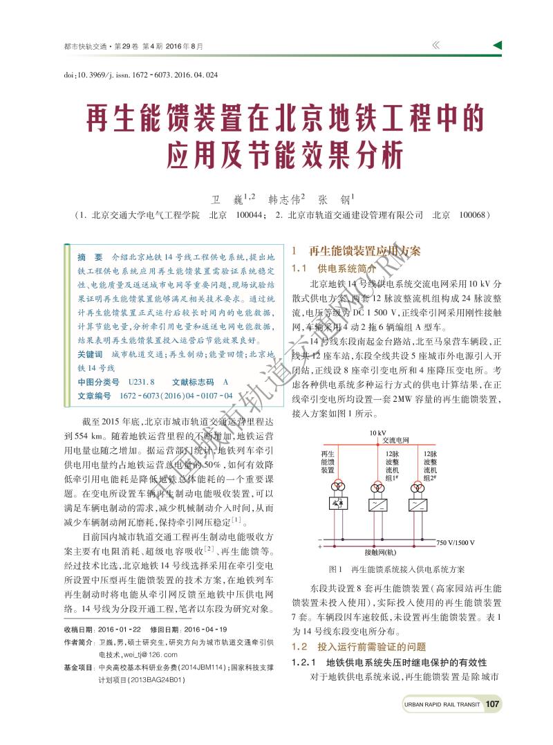 再生能馈装置在北京地铁工程中的应用及节能效果分析