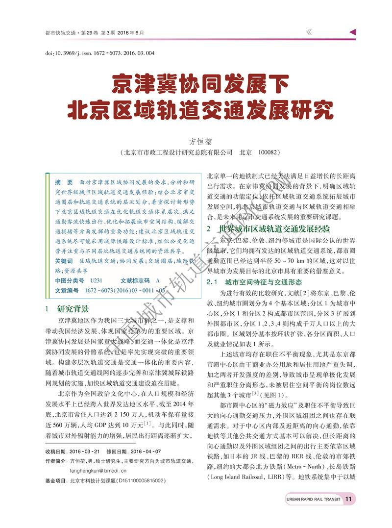 京津冀协同发展下北京区域轨道交通发展研究