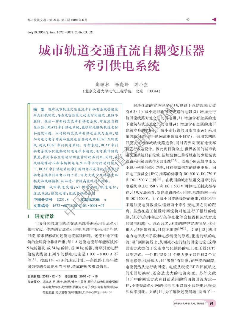 城市轨道交通直流自耦变压器牵引供电系统